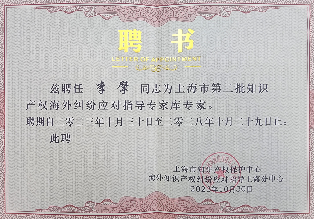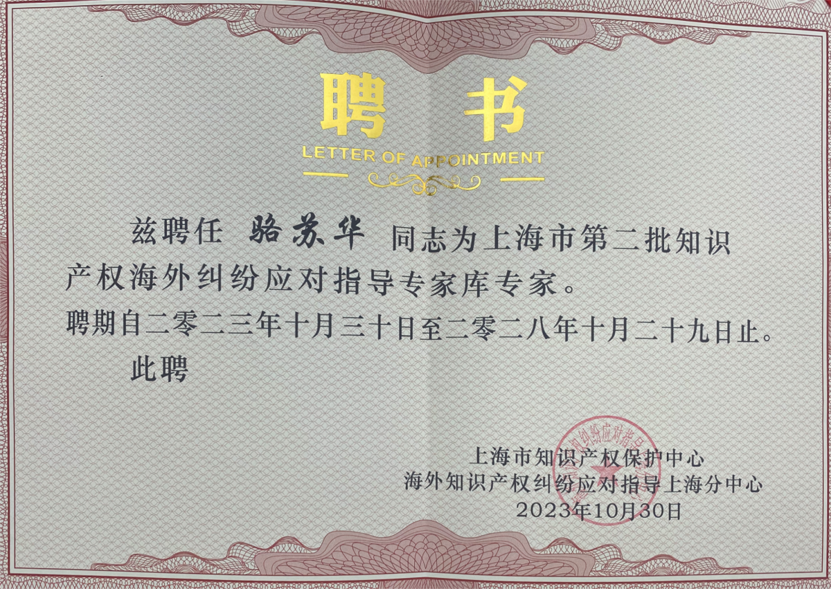 >乐球直播>新闻动态>集佳上海分所骆苏华、李擘获聘成为上海市第二批知识产权海外纠纷应对指导专家库专家
